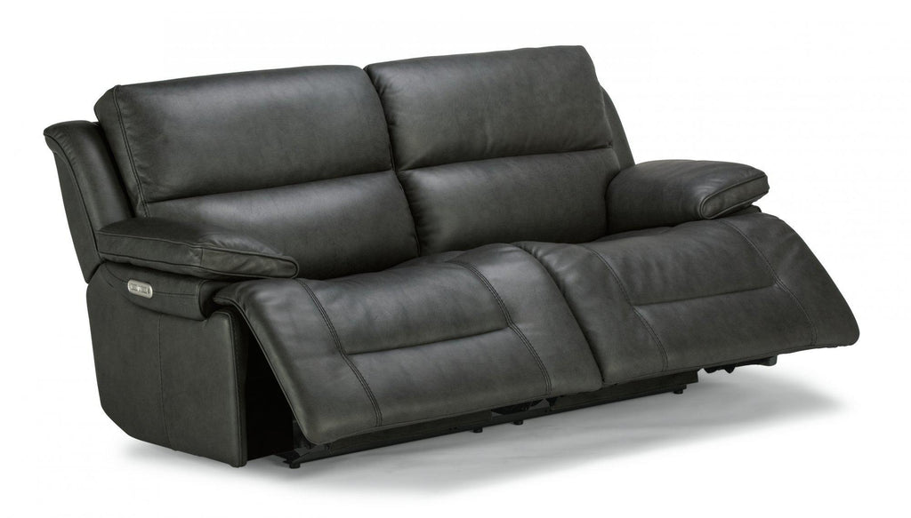 Flexsteel Latitudes Apollo Leather Power Reclining Sofa w/Power Headrests in Black