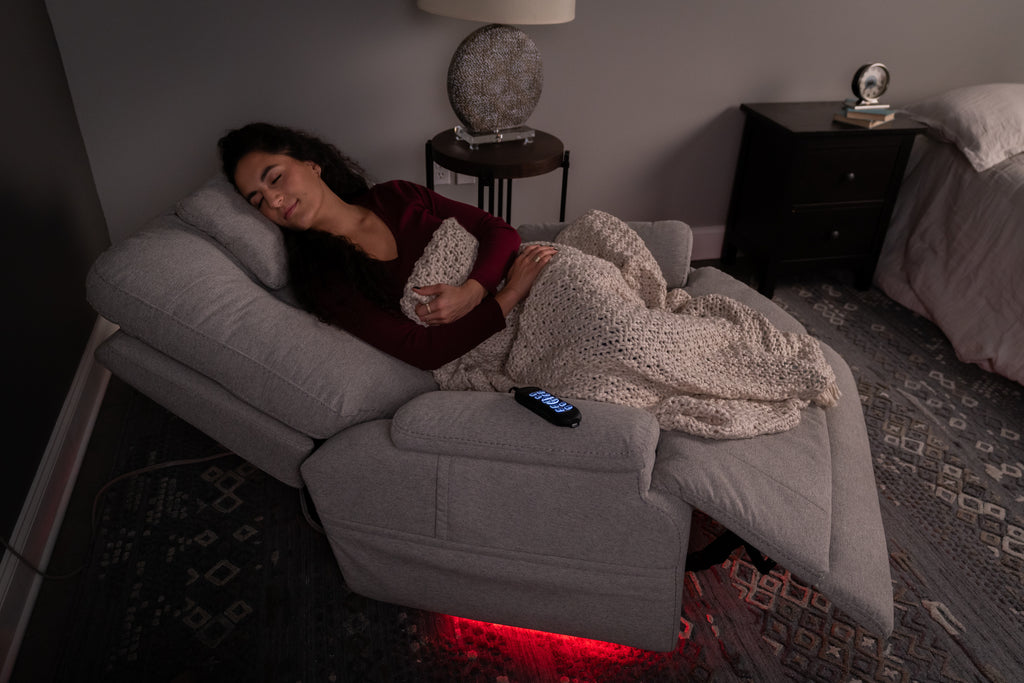 - Motion-activated LED base lighting turns on when you approach or get out of the recliner, and can be adjusted in brightness and color in the MyRecline app