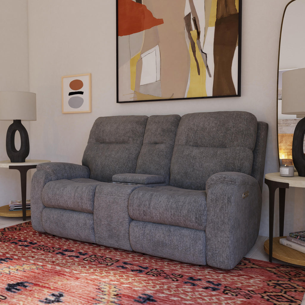 Combine beauty and effortless motion, with the Penn Power Reclining Loveseat with Console, Power Headrests & Lumbar. Using the power controls on either arm, each user can seamlessly adjust the recline setting independently. Power headrest and lumbar support lend customized comfort for your family's individual needs. USB ports, with zero-draw technology, allow you to charge your devices with ease. The center console provides cup holders as well as additional storage for remotes and more. Crafted with our patented DualFlex Spring System™ Penn provides flexibility and firmness for years to come. Choose from hundreds of fabric options to create a unique look to suit any style. Whether you are settling in for a family movie night or just relaxing solo, feel fully supported by Penn.