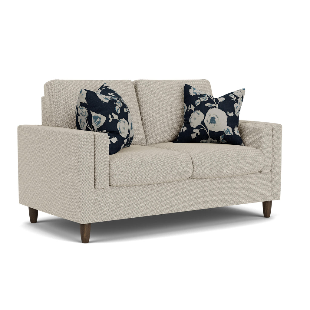 Experience timeless appeal with a modern twist with the Thomas loveseat. Inspired by classic mid-century style and vintage Flexsteel designs, this loveseat features layered arms, round tapered legs and bullnose cushions. Create the perfect style for your home with your choice of upholstery and pillow fabrics. Sized for ultimate versatility, the Thomas loveseat brings casual sophistication and unmatched comfort to any living space.